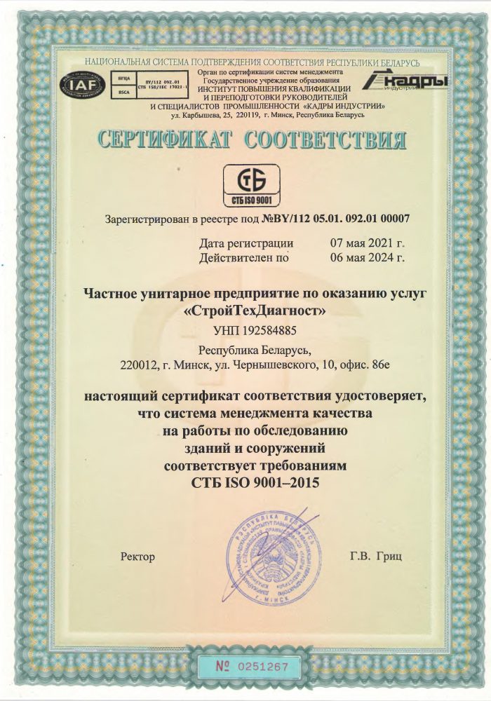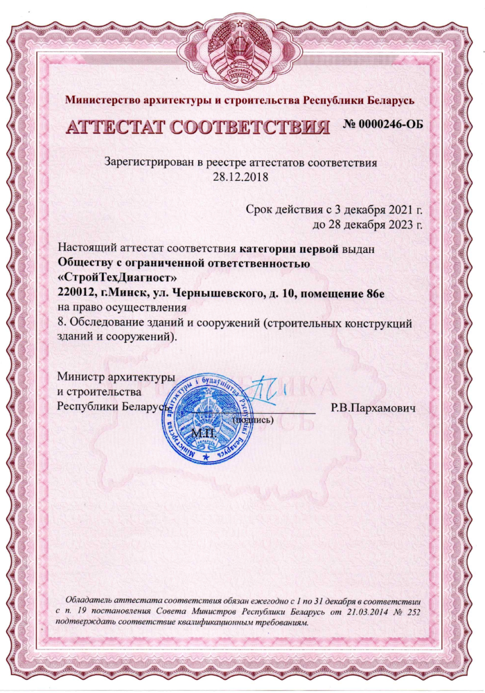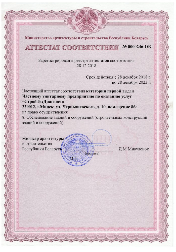 Выдаваемые нами по результатам обследования заключения составлены в полном соответствии с требованиями действующих ТНПА и утвержденного технического задания.
